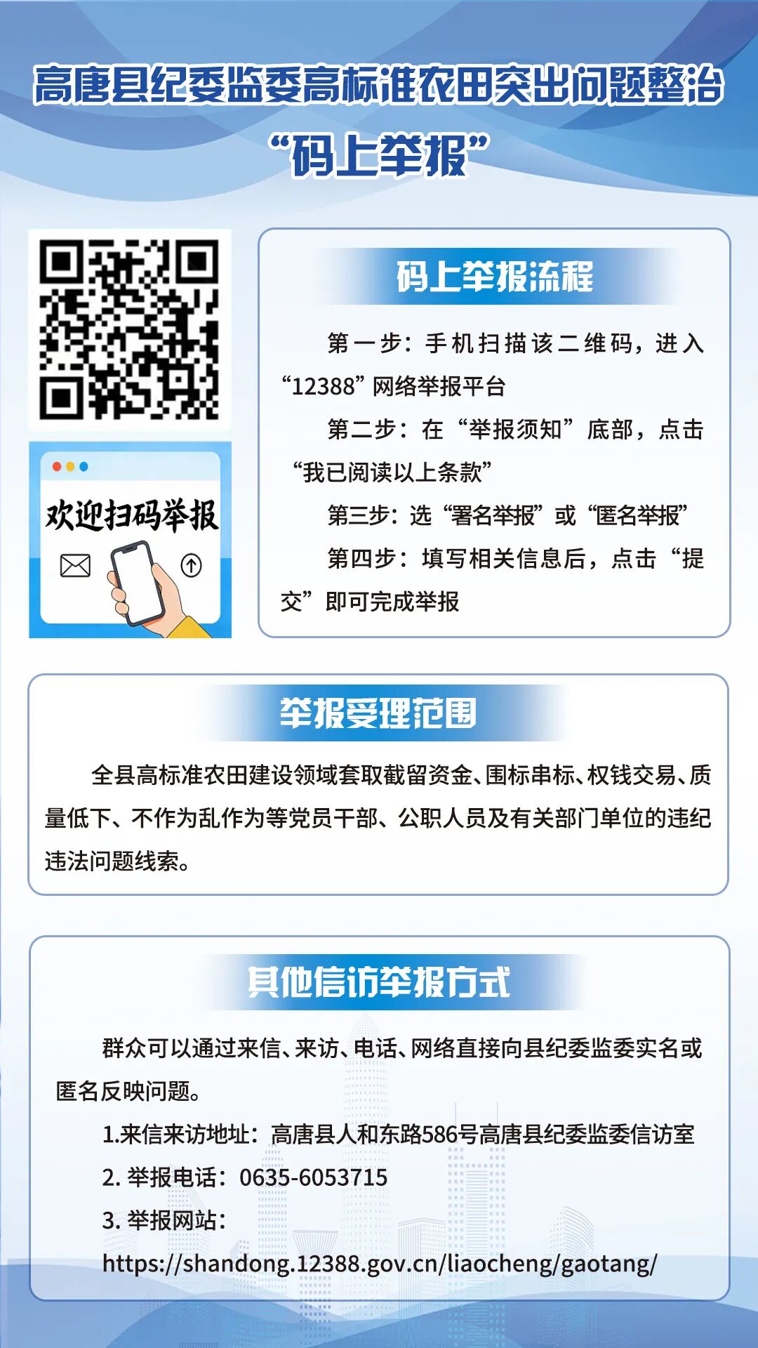 高唐县纪委监委高标准农田突出问题整治“码上举报”二维码上线